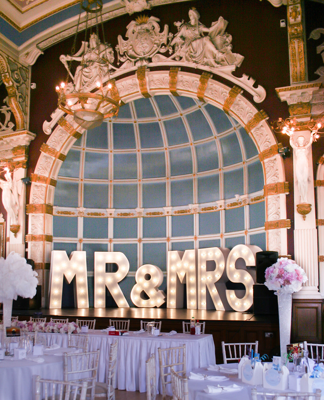 Large venue? Create an impression with our Light Up MR&MRS Letters to Hire. Also available as MR&MR and MRS&MRS. You will need 8-10m floor width for these combinations.